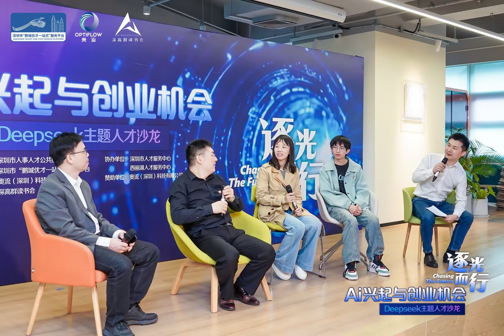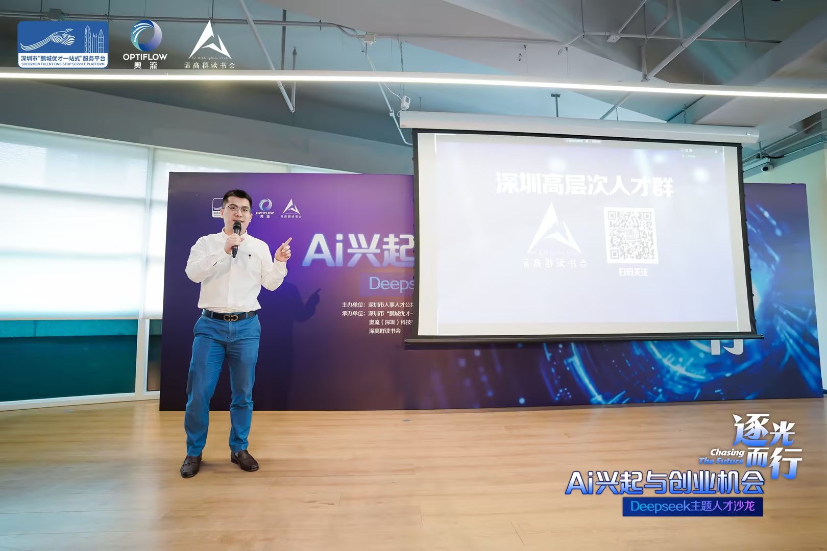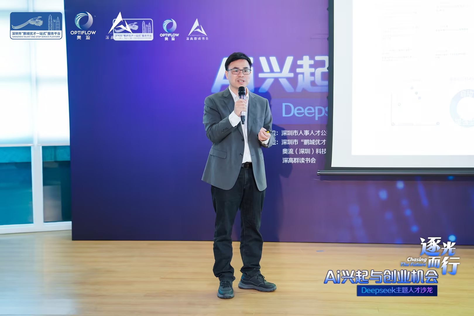 2025年3月16日,由深圳市人事人才公共服务中心主办,深圳市“鹏城优才一站式”服务平台、奥流(深圳)科技有限公司、深高群读书会共同承办,深圳市人才服务中心、西丽湖人才服务中心协办的“AI兴起与创业机会-DeepSeek主题人才沙龙”(以下简称沙龙)在西丽湖人才服务中心顺利举办。活动由奥流(深圳)科技有限公司全程赞助。来自学术界与产业界的60余名专家、学者、高校师生、创业人士以及各领域从业者参与了此次活动。