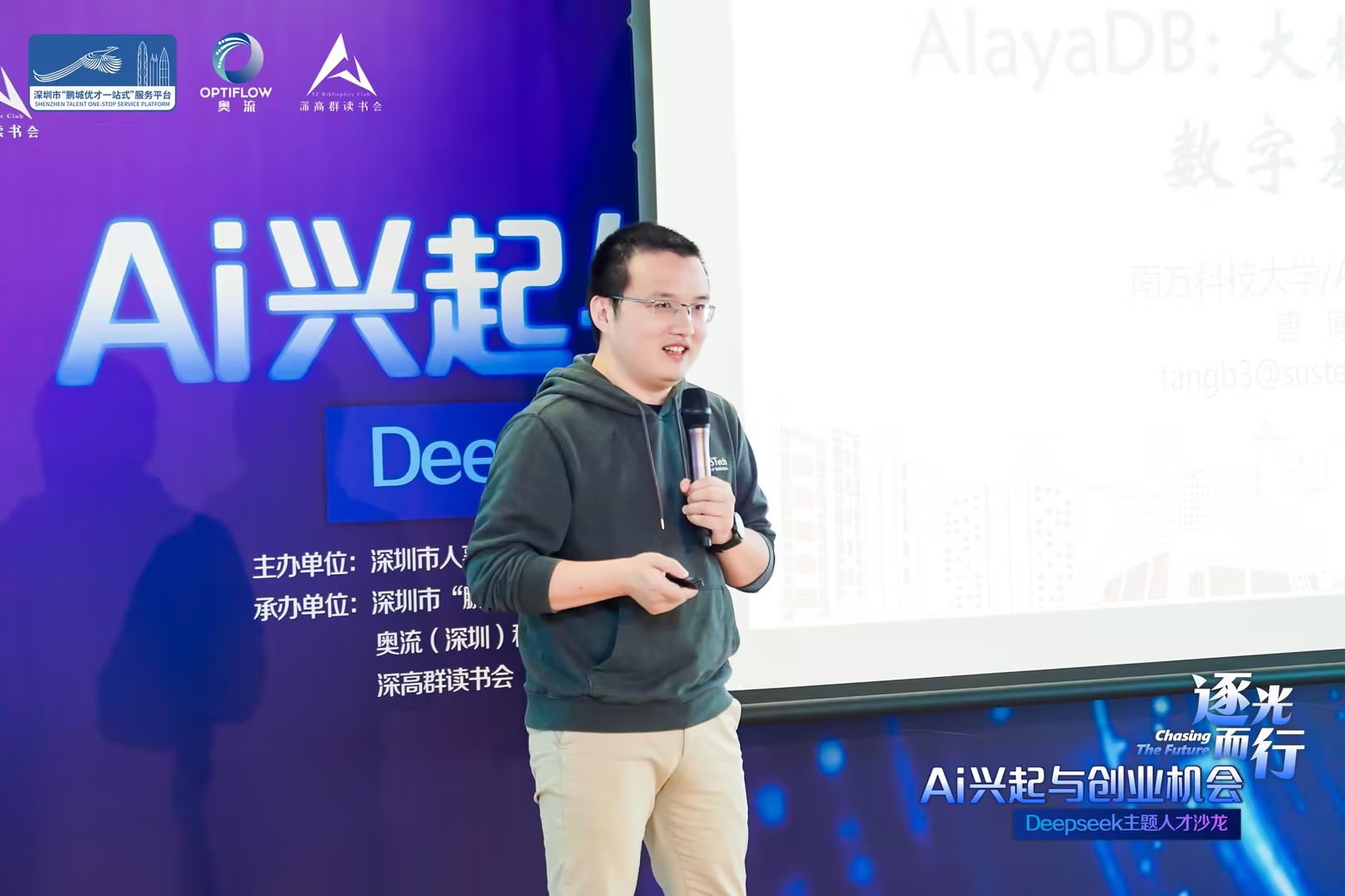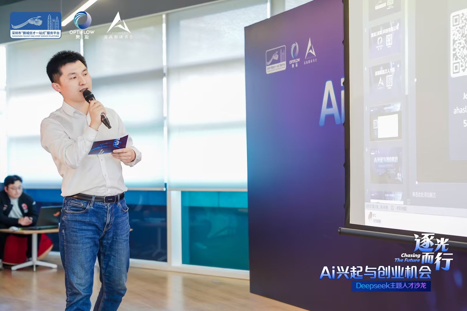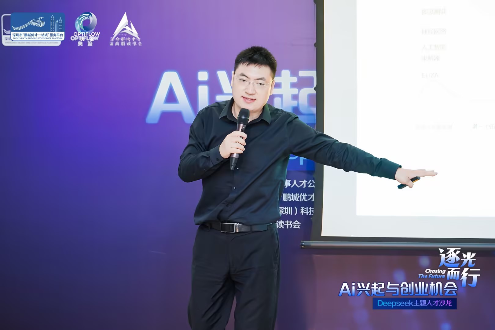 2025年3月16日,由深圳市人事人才公共服务中心主办,深圳市“鹏城优才一站式”服务平台、奥流(深圳)科技有限公司、深高群读书会共同承办,深圳市人才服务中心、西丽湖人才服务中心协办的“AI兴起与创业机会-DeepSeek主题人才沙龙”(以下简称沙龙)在西丽湖人才服务中心顺利举办。活动由奥流(深圳)科技有限公司全程赞助。来自学术界与产业界的60余名专家、学者、高校师生、创业人士以及各领域从业者参与了此次活动。