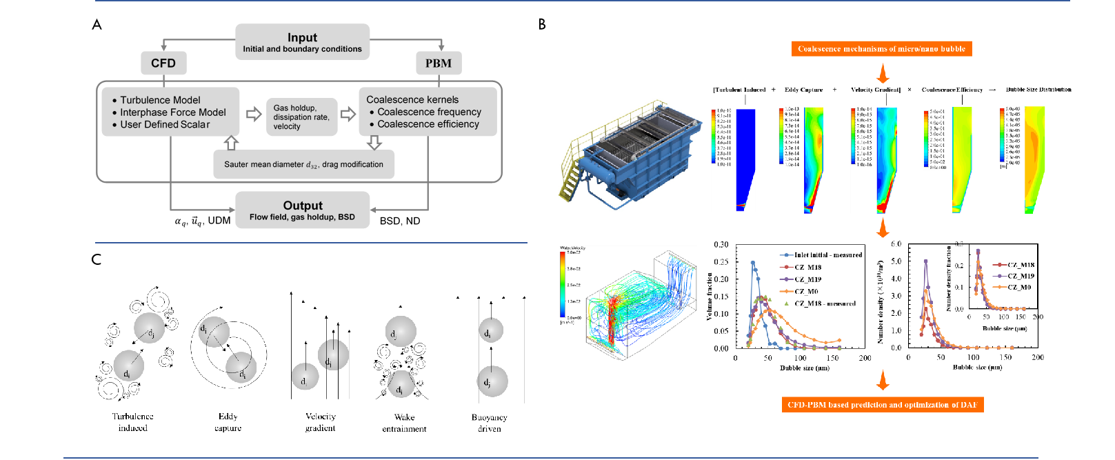 通过CFD-PBM模拟了空气流速和混合液粘度对气泡尺寸分布(BSD)的影响,用于指导精确曝气控制